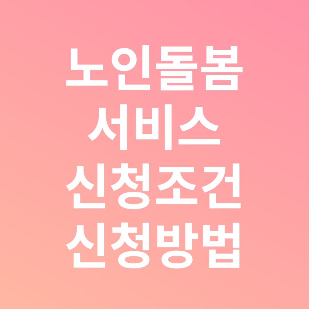 노인돌봄서비스는 혼자 힘으로 일상생활을 하기 어려운 노인과 독거노인에게 안전 확인, 생활교육, 서비스 연계, 가사지원, 활동지원 등 맞춤 형 복지를 제공하는 서비스를 말합니다. 이러한 노인돌봄서비스의 종류, 신청 대상자, 신청 조건, 신청 방법에 대해 알아보겠습니다.